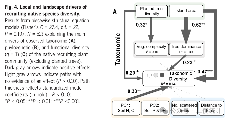 今天Science把榜一大哥的位置留给了一篇油棕种植园中,“树岛”可以提高本地种植物多样性的研究。这又是一篇Piecewise SEM的完美应用案例。