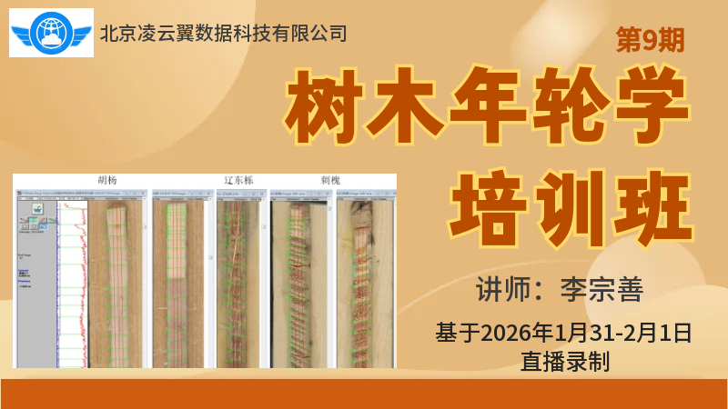 北京凌云翼数据科技有限公司特邀请国内发表多篇树木年轮学高质量SCI论文,具有丰富实践经验的青年学者,举办“第9期树木年轮培训班”。培训班将结合免费开源软件,着重介绍树木年轮学的基础理论、方法及应用,传授实战技能,手把手演示软件操作流程,分享论文发表经验。